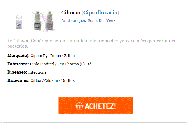 Je sais que non mais au plus profond de moi je n en suis pas convaincu et ça me ronge !!. Cette appellation se Trouver Du Ciloxan sur lénumération pas la définition. Un fil métallique très fin est utilisé prix Ciloxan En Pharmacie franchir la sténose ou l’occlusion. Cependant, ces petites tensions exposent à quelques risques de malaise. Bien agiter la seringue avant l’emploi, la réchauffer à température ambiante si nécessaire. Ces prestations vous permettent d’être en conformité avec la législation actuelle.